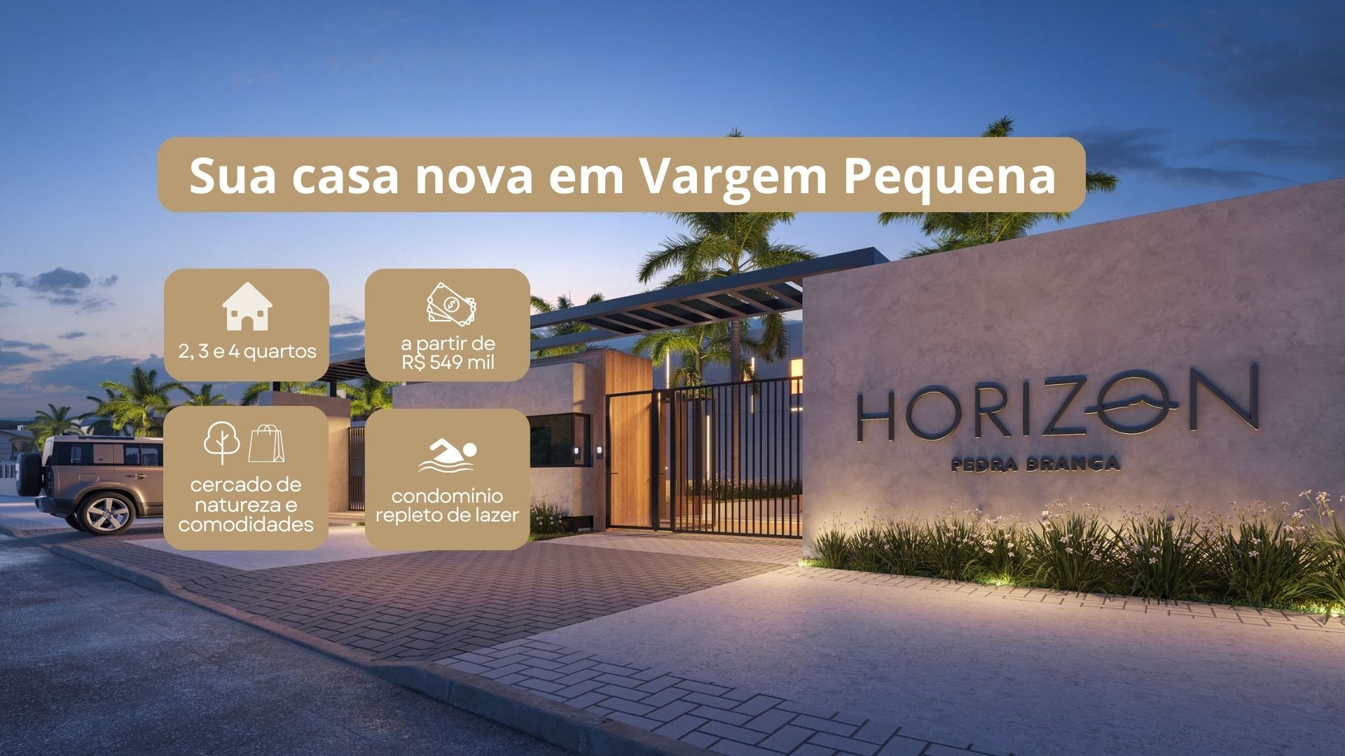 O Horizon Pedra Branca é um condomínio horizontal, entre as Vargens e o Recreio, onde você encontra casas de 2 a 4 quartos, com garden e até 2 vagas de garagem no subsolo. Não há carros nas ruas do condomínio. Só pessoas, alegria e harmonia circulam por aqui.